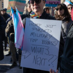 This image captures the intersection of trans rights and broader political activism, illustrating how LGBTQ+ advocates are deeply engaged in resisting authoritarianism and ensuring the protection of their communities.