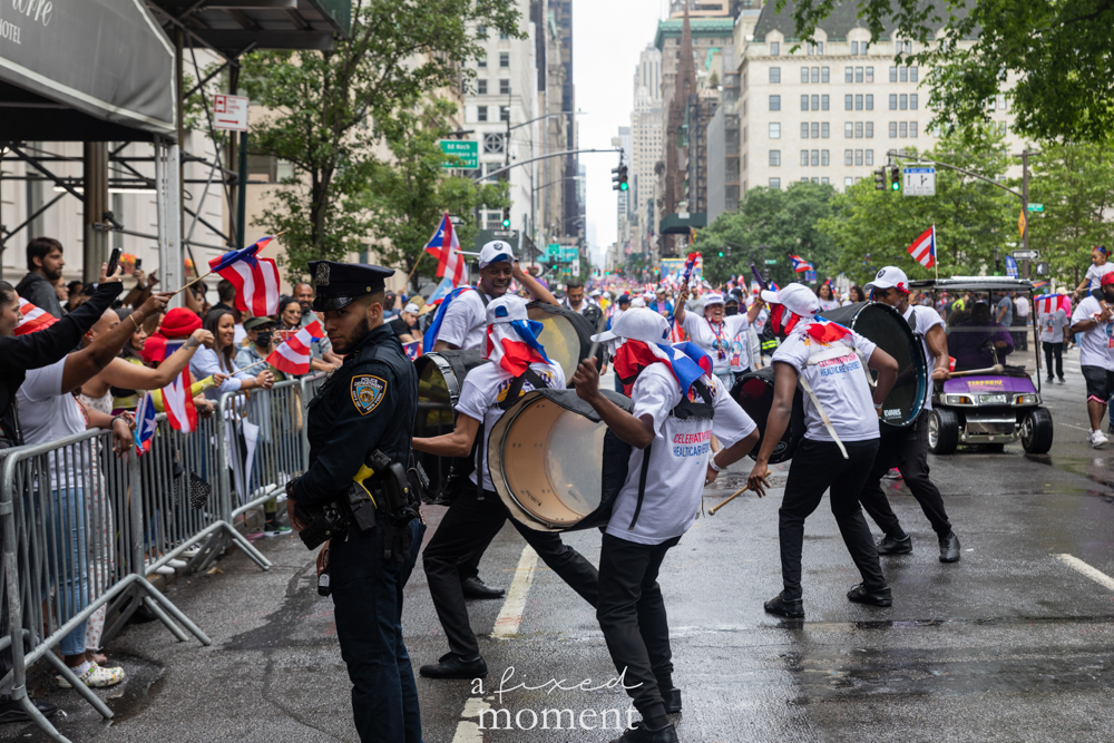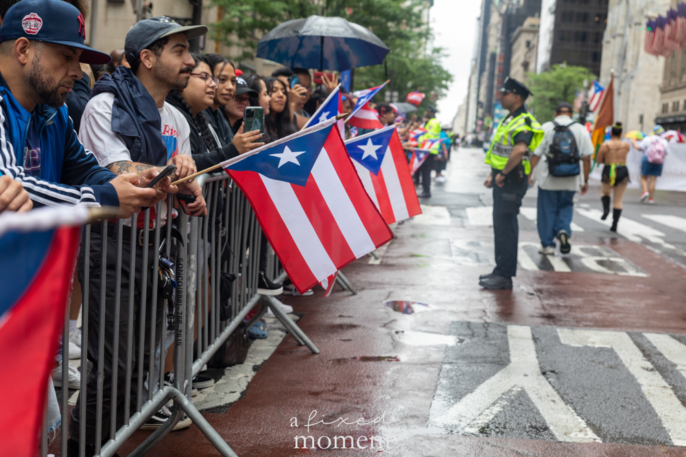 The parade began in the morning at Fifth Avenue and 44th Street, where the lively procession of floats, marching bands, and dancers made its way north toward 79th Street. The energy was electric as the crowd cheered and waved flags, with many participants dressed in traditional Puerto Rican attire, complete with vibrant colors and bold patterns.