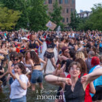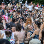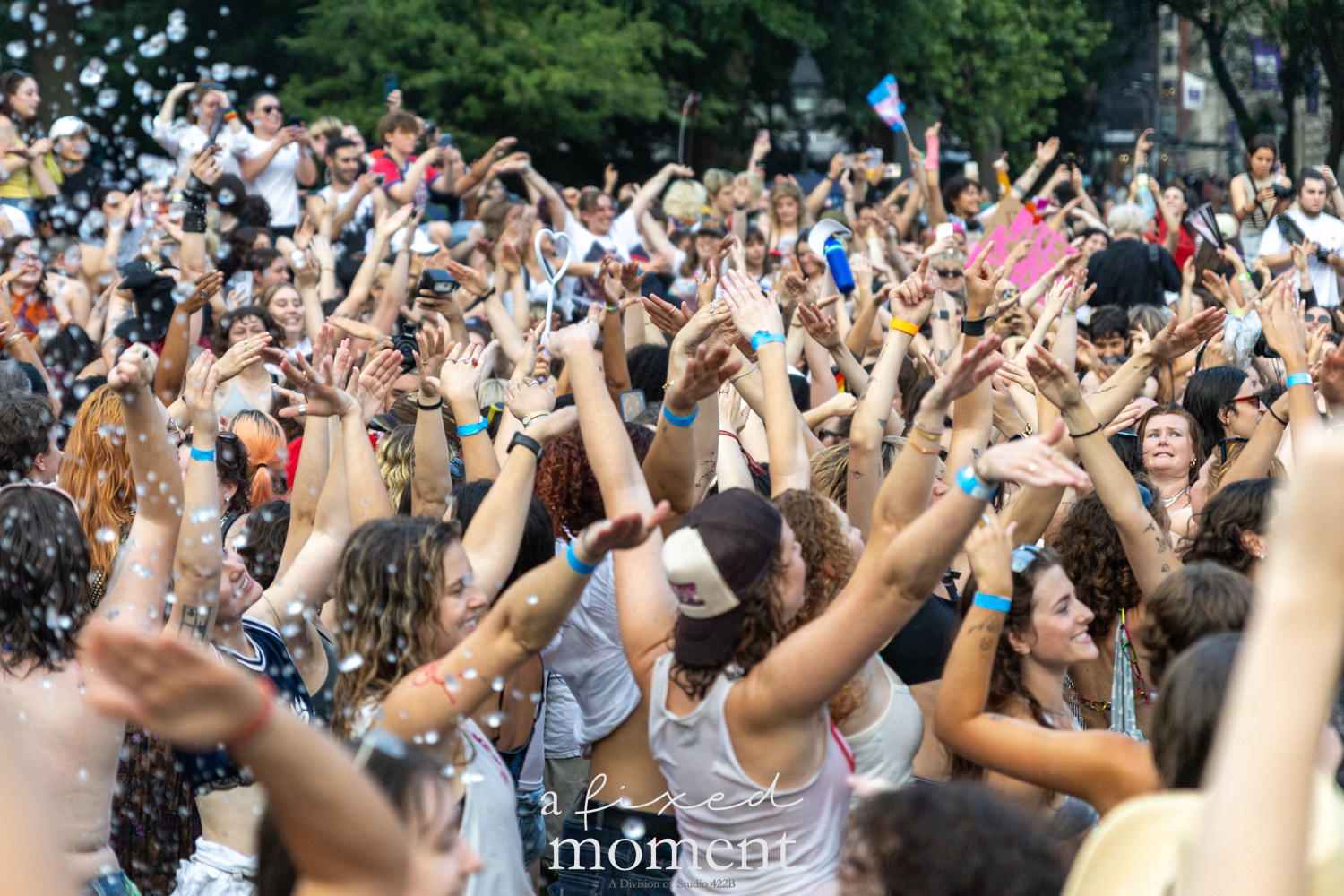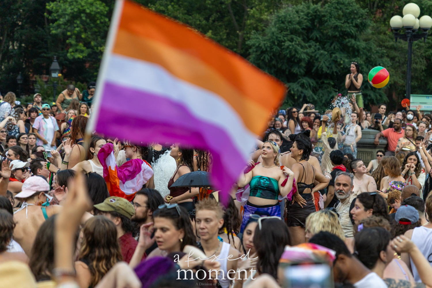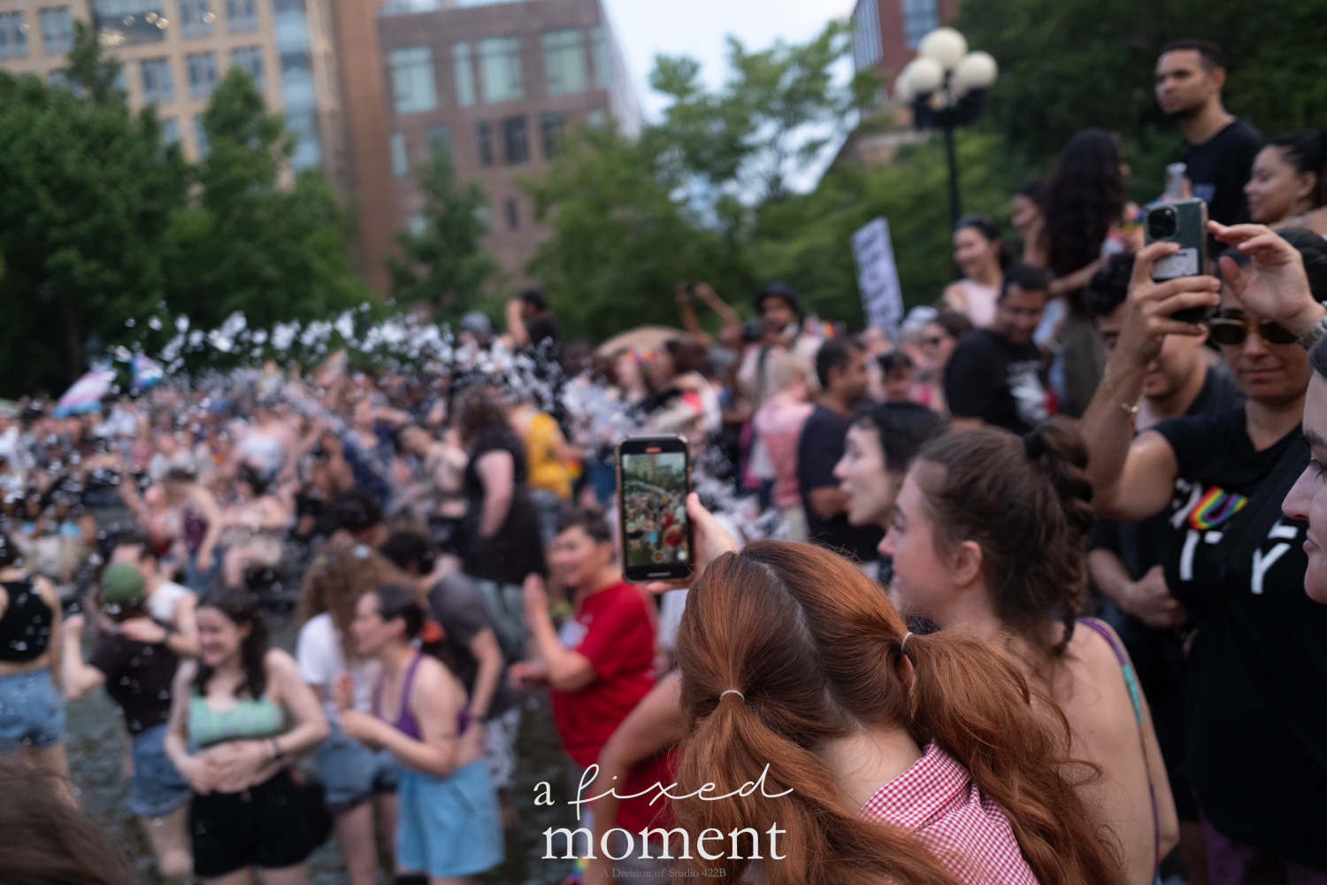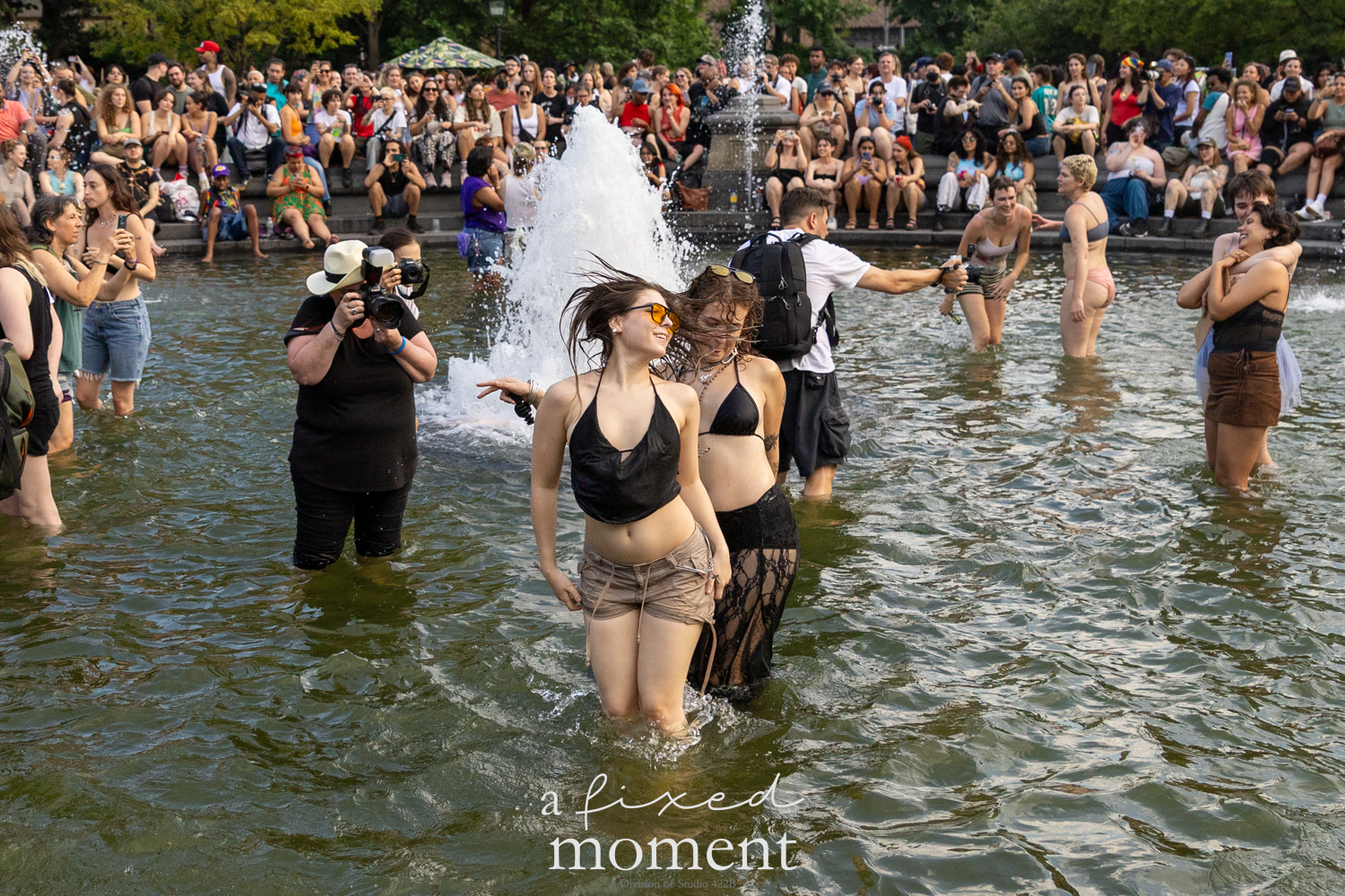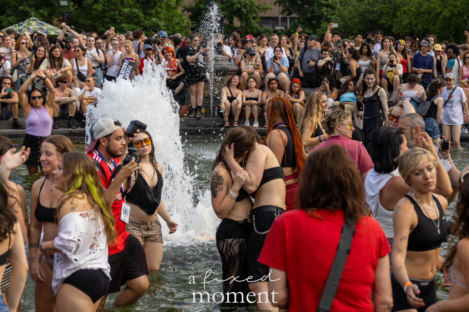 After the march, the spirit of resistance transformed into pure celebration. Thousands poured into the fountain, splashing in the water, draped in Pride flags, raising fists, dancing to music, and sharing chants that echoed off the Washington Square Arch. Some lifted banners high