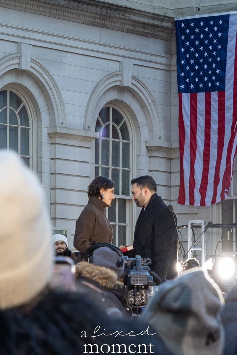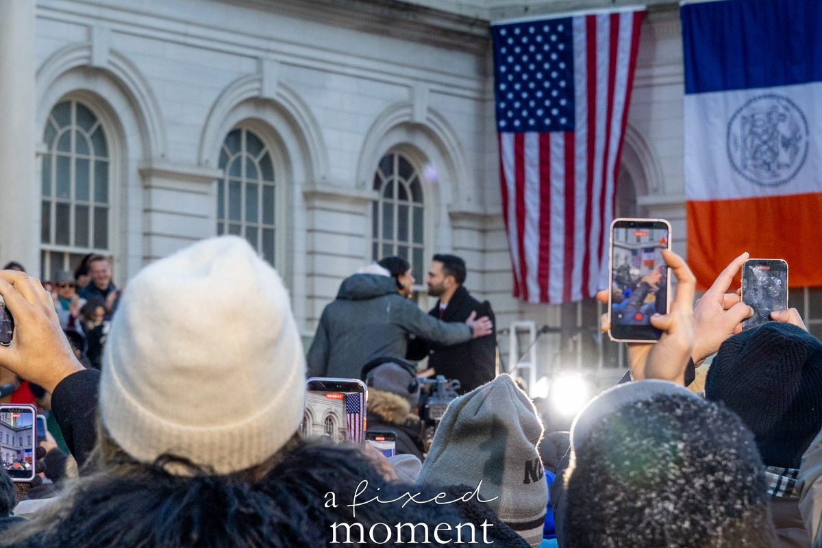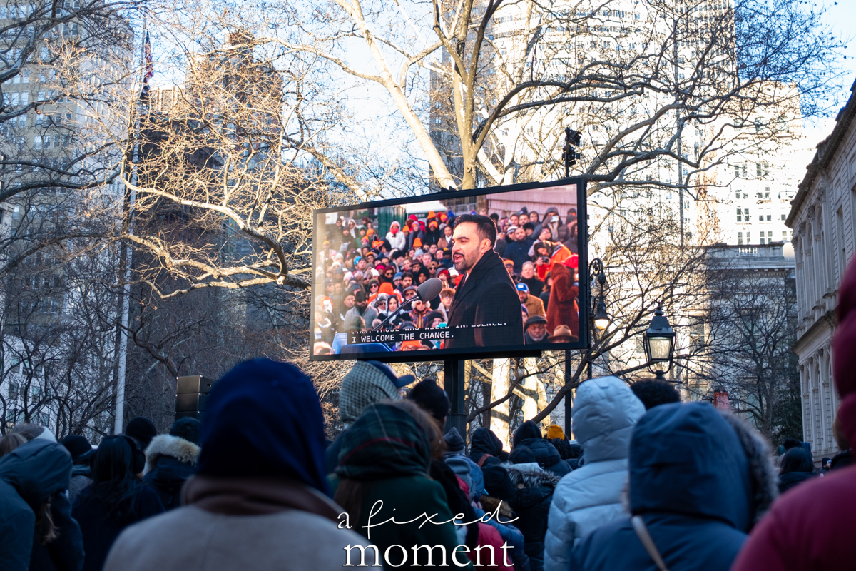 On January 1, 2026, thousands gathered outside New York City Hall for the inauguration of Zohran Kwame Mamdani, marking the beginning of a new mayoral administration at the start of the new year. Despite the cold winter weather, the City Hall plaza filled early with attendees bundled in coats, hats, and scarves, forming a dense crowd that stretched well beyond the main stage.